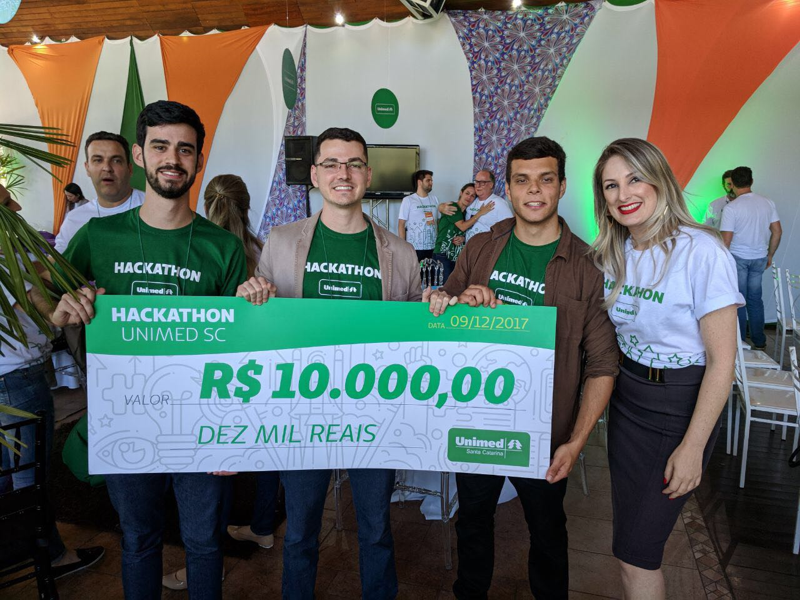 Itajaí - Eduardo Borges Gomes, Lucas Martins Veras Pereira e Victor Sanches Perguer, acadêmicos do curso de Engenharia de Computação da Universidade do Vale do Itajaí (Univali), foram os vencedores do 1º Hackathon Unimed SC, realizado nos dias 8 e 9 de dezembro, no Espaço Viver Bem, da Unimed Litoral, em Itajaí.